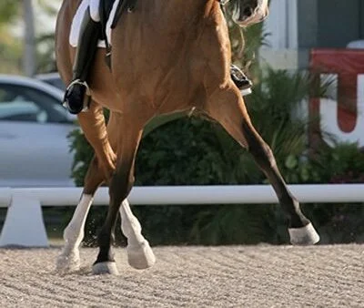 Across the Midline. Gently guide your horse’s leg across the midline until you meet resistance. Then stop.